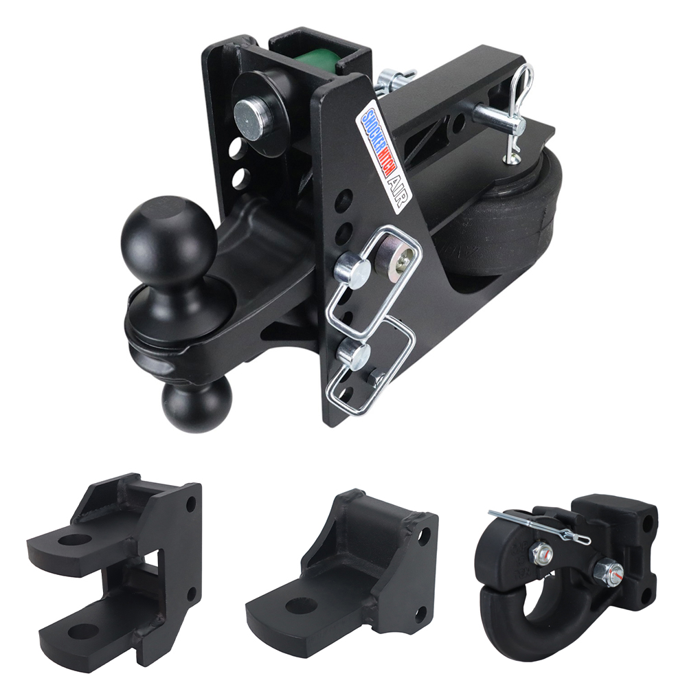 - Air Ride Technology: With a built-in air ride system to cushion the ride. Absorb the road shock, jerks, bumps, bangs, and tugs experienced when towing. Creates a smoother, safer ride & even reduces the tendency to trailer sway. Dual rubber bump cushions also offer additional performance. Add an instant air ride to your pickup & trailer.