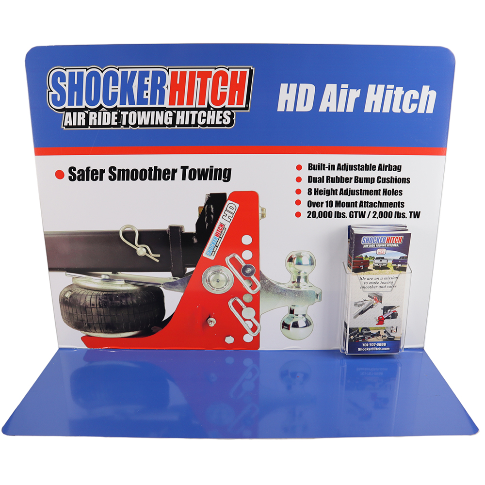If you are a Shocker Hitch dealer, you can order sales & marketing support materials here. We have tri-folding product brochures, counter top displays, posters, dealer application guides, new dealer support packs and more. The new dealer support pack includes 2 posters, brochures and a dealer product application guide.