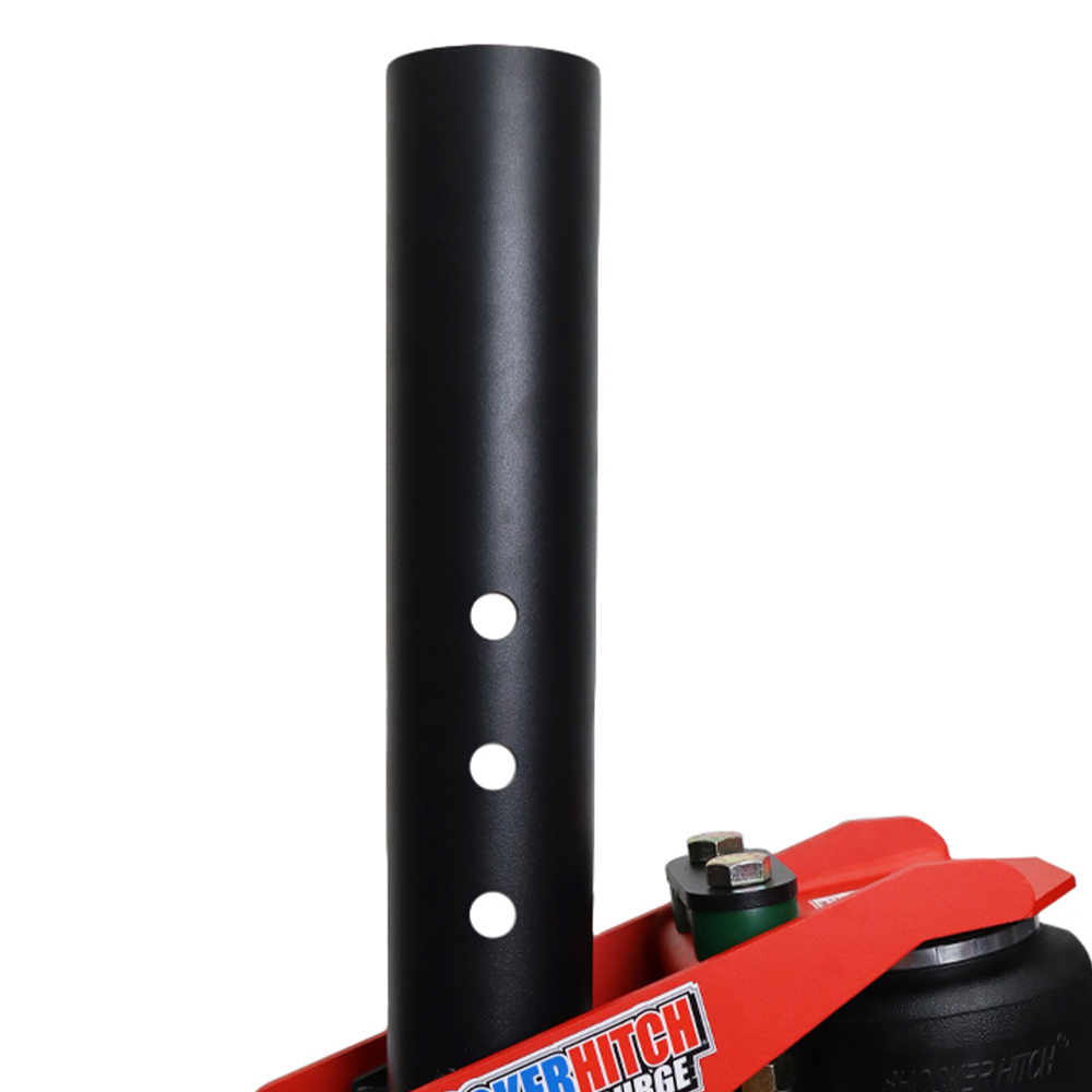 Hold or support Shocker at vertical measurement noted in Step #1. This should duplicate the previous ride height of the trailer. Shocker hitch must be properly aligned, (parallel with trailer), to maximize its benefits. Note: If your trailer coupler tube is equipped with a pin or pins, the correct pin location must be marked in the Shocker hitch insert tube and have a qualified machine shop drill / machine the pin holes.